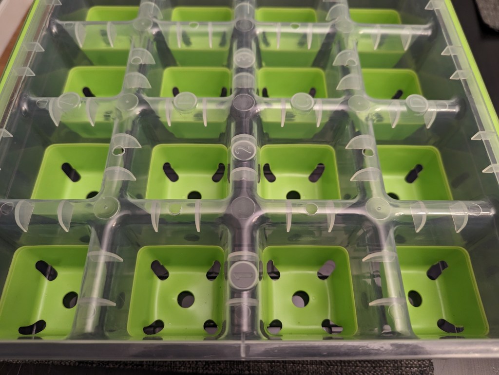 The last factor to take into consideration when seed starting is watering. When first planting seeds, you can cover your trays with saran wrap to act as a green house, or upgrade to a plastic dome. Bottom water every 3-5 days. I purchased this mini greenhouse to act as my moisture dome.